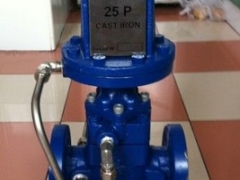 启动前导阀弹簧处于自由状态时,主阀和导阀处于关闭状态。导阀有弹簧力作用打开,蒸汽经由导阀进入主隔膜室,一部分蒸汽则经由控制孔流出,当导阀流入的蒸汽大于由控制孔流出的蒸汽,主隔膜阀中的控制压力增大,打开主阀。随着蒸汽流过主阀,下游压力的增量经由感应管反馈,作用在导阀隔膜下,平衡隔膜上部的弹簧压力,使导阀组建关闭节流,维持主隔膜中的压力,控制主阀开度输送适量的蒸汽。调节导阀隔膜上的弹簧即可改变下游压力。