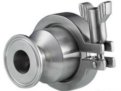卫生级卡箍式止回阀 卫生级卡箍式止回阀由阀体、阀瓣、阀杆及弹簧等零件组成,采用对夹衔接。由于阀瓣的关闭行程短,并且有弹簧加载,可显著减少水锤现象。该阀主要适用于城市、工业及高层建筑给水、排水管网上。由于其构造长度比普通止回阀短,对有装置空间限制的场所最为适用。